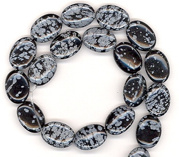 Snowflake Obsidian 13x18mm Puff Ovals (Sold per Strand)